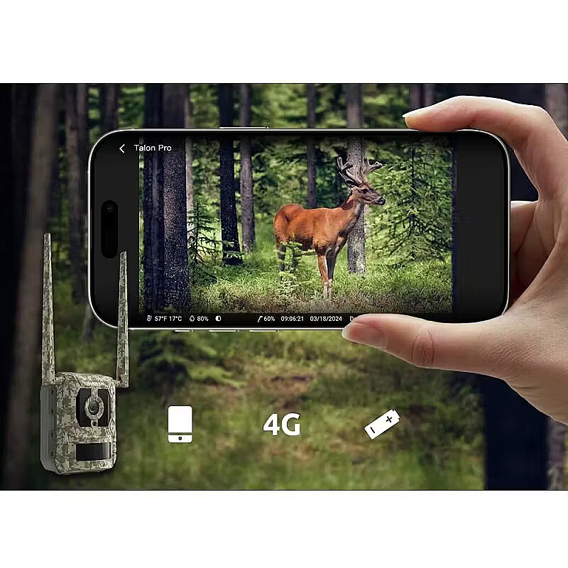 With the Talon Pro, you're never far from the action. The included SIM card auto-selects the strongest 4G network, ensuring your camera stays online no matter how remote your hunting grounds or wildlife observation site is. Whether you're tracking the game or watching nature unfold in real-time, you can view the wilderness from anywhere, any time, right from your phone. 4K True-to-life Clarity, Stealth Observation