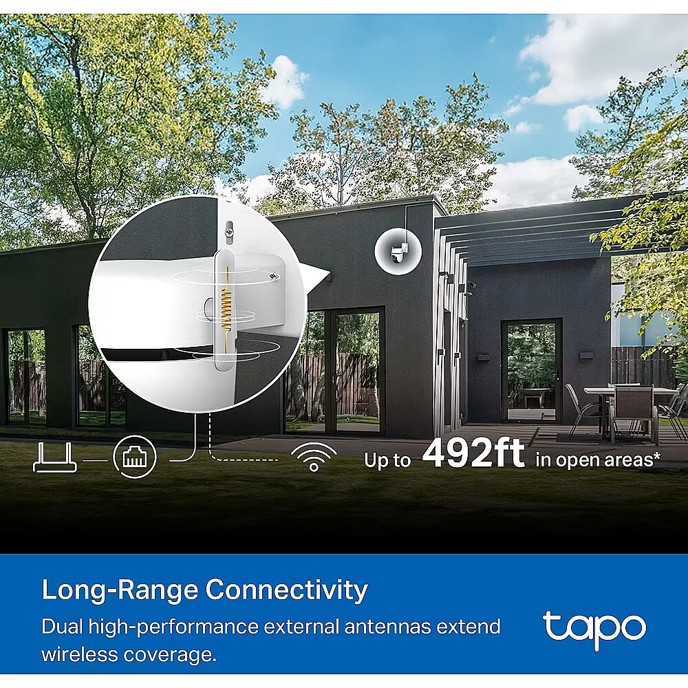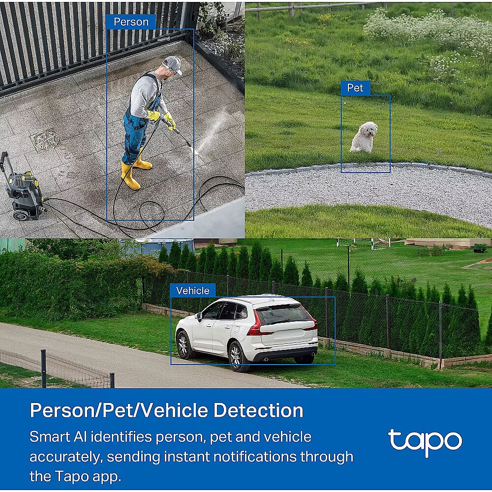 LongDesc - Power Your 360° Vision with 3K ClarityOutdoor Pan/Tilt Security Wi-Fi CameraCapture Every Detail, Day and NightWith 3K resolution, Tapo C530WS offers enhanced video quality better than 1080P.Enjoy colorful images in low-light conditions at night with built-in spotlights and a starlight sensor. With smart mode, the live view turns from black and white to color after detecting person.AI Detection for More Relevant NotificationsSmart AI accurately identifies people, pets, and vehicles and detects tampering and line crossing. It sends instant notifications when specific objects are detected, ensuring you receive timely and precise alerts.Long-Range Uninterrupted ConnectivityDual high-performance external antennas extend wireless coverage up to 492 ft in open areas. You can also connect your camera to the network through the Ethernet port for a stable connection.Designed to Withstand Extreme ConditionsWith IP66 weatherproofing, Tapo C530WS offers excellent waterproof and dustproof performance for outdoor scenarios. It works well in rain, dust, and heat, operating reliably in different environments.Custom Sound and Light AlarmCustomize your own audio alarm to frighten away unwanted visitors. Adjust two built-in spotlights for fine-tuned illumination.24/7 Secure Local & Cloud StorageSave crucial moments to a microSD card† (up to 512 GB) or subscribe to Tapo Care for cloud storage‡ after a 30-day free trial, ensuring you never lose important footage.Multiple Installation OptionsUse the mounting screws, template, and loops△ to install on any wall, ceiling, or pole for the perfect view—wherever you want.Customizable Activity ZoneCustomize detection zones to receive alerts for your most important areas.Two-Way AudioCommunicate directly with the outdoors for your convenience.Physical Privacy ModeMaintains your privacy with the lens physically blocked by the housing.