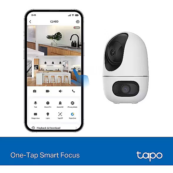 Two 2K 3MP lenses work together to capture a broader perspective, minimizing blind spots and delivering all-round protection for your home.2K 3MP Dual Lens - Capture the full picture with dual 2K high definition optics, monitoring two separate areas at the same time with just one device. Engineered to minimize blind spots for optimal coverage.Wide-angle & Telephoto Lens - With 122° FOV wide-angle lens and 6mm telephoto lens, it ensures all-around awareness and down-to-the-detail protection of your home.Synchronized Smart Tracking - When the fixed lens detects events, the pan/tilt lens will automatically pivot to focus on and track the moving object.One-Tap Smart Focus - Select an area in the wide-angle view, and the pan/tilt camera will focus on it instantly.Free Smart Dual AI Detection & Notification - Get instant push notifications when motion, person, pets, vehicles or even baby cry are detected, there is no additional fee to use it.Works with Alexa, Google Home & Samsung SmartThings - Fully compatible with Amazon Alexa and Google Assistant, use your simple voice command to view Tapo indoor/outdoor home security wi-fi camera live stream.Night Vision up to 40 ft -Even in complete darkness, an advanced IR algorithm delivers clear black-and-white footage.Secure Local or Cloud Storage - Save footage continuously on up to a 512 GB microSD card (not included) or subscribe to Tapo Care for cloud storage which saves 30-day video.2-Way Audio - Engage in seamless, real-time conversations with our two-way audio feature, designed for minimal latency and exceptional sound clarity.