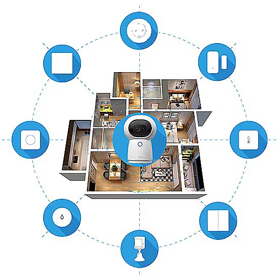 Camera Hub G3 оснащен датчиком высокого разрешения 2K 2304 × 1296 пикселей для лучшего качества изображения и большей детализации. Широкоугольный объектив 110° с горизонтальным и вертикальным двигателем обеспечивает угол поворота до 360°, поддерживает автоматическое вращение и обнаружение лиц и домашних животных. Универсальная совместимость