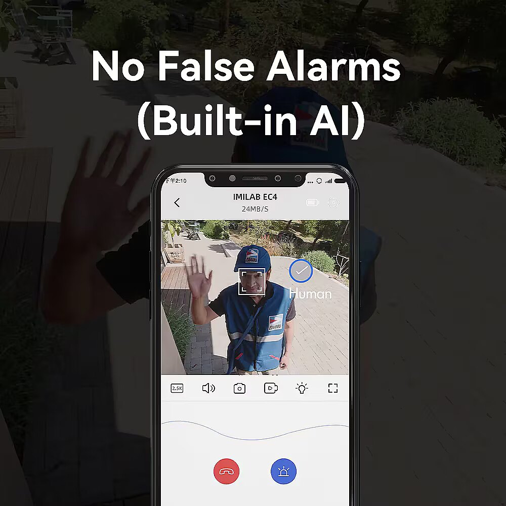 Description - IMILAB EC4 2K outdoor camera with gateway Built-in 5200 mAh battery Optional solar panel IP66 weatherproof Smooth live 4 megapixel HD transmission AI face recognition and person detection Full colour night vision Configurable activity zone Adjustable PIR sensitivity Control via the IMILAB Home mobile app Imilab Smart Hub gateway included, which stores video recordings from the camera Wireless outdoor camera Say goodbye to constant charging and hello to battery-saving technology with the EC4 Spotlight Battery Camera. With a built-in 5200 mAh battery, the home security camera can run for up to several months without interruption. Thanks to its ability to work with an optional solar panel (to be purchased separately), you can instead forget about charging altogether. Night vision Say goodbye to grainy, fuzzy black and white video and say hello to colour. The built-in spotlight turns on whenever a person is detected at night, displaying full-colour footage. 2K video The camera has 4 MPx, an F1.6 aperture and records in 2K resolution. The IMILAB EC4 has a modern design, a capacious battery, an improved microphone and speaker, and LED lighting. In-app notifications The IMILAB EC4 wireless camera will notify you as soon as it detects movement in its field of view. The EC4 works with the IMILAB app, where you can set the length of the video the camera should record when motion is detected. The maximum length of such a video is 60 seconds. Video can be uploaded to the cloud or to a microSD card. The maximum supported memory is 64 GB.