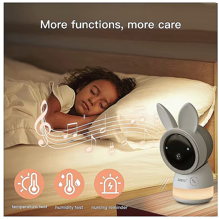 Sisseehitatud mikrofon ja kõlar pakuvad sujuvat vestlust beebi / loomadega igal ajal ja igal pool. Samuti saab mängida rahustavaid helisid ja hällilaule. Toetab temperatuuri ja niiskuse tuvastamist, helitugevuse reguleerimist, imetamise meeldetuletust. Saad seadistada, jälgida ja juhtida kõiki oma kaameraid ühes rakenduses. Samuti saad jagada väärtuslikke hetki oma pere ja sõpradega läbi rakenduse. Jagamise saab igal ajal tühistada. Micro SD Card & AWS Secure Cloud Storage Arenti Cloud Service pakub turvalist andmesalvestusvõimalust. Kui oled Arenti pilvteenuse aktiveerinud, salvestab see andmed turvaliselt AWS-i lisaks microSD-kaartidele ja mobiiltelefonidele ka Amazon, ainus Arenti pilveteenuse pakkuja. Ekraan toetab micro SD-kaarti (kuni 128 GB) ja pilvesalvestust ning kaamera toetab micro SD-kaarti (kuni 256 GB) ja pilvesalvestust. Eraldusvõime: 3MP 2K Ultra HD IR-kaugus: öine nähtavus kuni 10 m Andmesalvestus: microSD kaart (max 256 GB), pilvesalvestus Video kodeering: H.264 Andmeedastus: Wi-Fi IEEE 802.11 b / g / n 2,4 GHz Sisseehitatud mikrofon Sisseehitatud kõlar Toite sisend: DC 5 V / 1 A Monitori ekraan: 5-tolline 720p LCD ekraan Ekraani aku: 3000 mAh Töötemperatuur: 0– 40° C Ühilduvus: iOS 9 või uuem, Android 5 või uuem Mõõtmed: 69 × 63 × 119 mm Kaal: 207 g