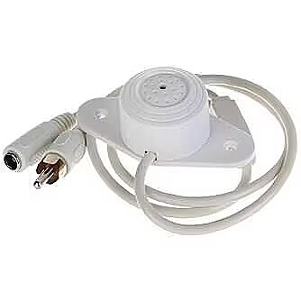 Description - > Omni-directional condenser microphone, high fidelity; > 30KV Air contact ESD, built-in Lightning Protection, power supply polarity reversal protection and electrostatic protection; > Pinhole design, hidden installation; match with cameras or storage devices which have audio function Scope 5-40m2 Sensitivity -40dB(-45~-20dB adjustable) Frequency response 20Hz~20kHz Directional characteristic Omni-directional SNR 70dB(1m 40dB sound source SPL) Dynamic range 104dB(1KHz at Max dB SPL) Max. sustainable sound pressure 120dB SPL(1KHz, THD 1%) Output impedance 600O(non-equilibrium) Output signal amplitude 2.5Vpp/-25dB Working voltage DC 12V(9~15V) Working current 60mA(50~100mA) Working temperature -30?~+70?(-22?~+158?) Color White Outer shell PC Dimension 63mmx30mmx22mm(2.48”x1.18”x0.87”) Weight 34g(0.07lb) Carried standard CE/FCC