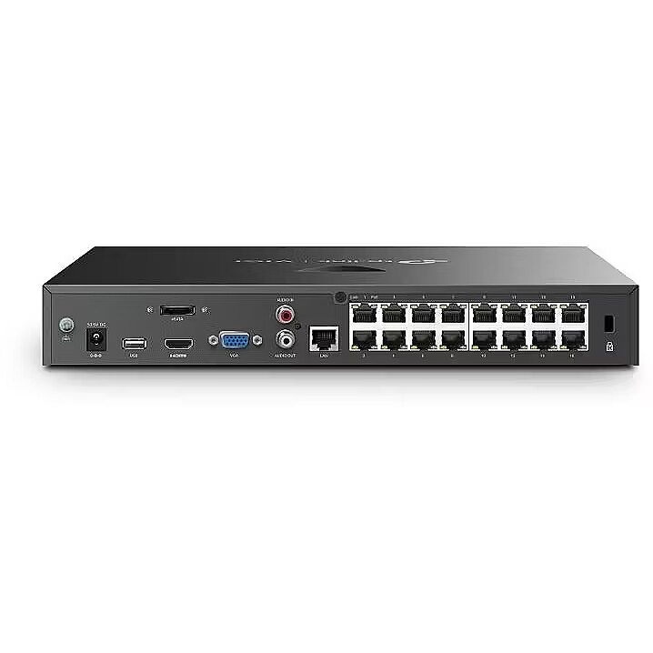 LongDesc - Security Never Shuts DownEvery Angle All on One Screen4K HDMI Video Output & 16MP Decoding CapacitySharp image definition up to 8MP (4K) ensures you capture every detail. 8-ch@2MP decoding capacity allows you to enjoy more-channels live view and playback at the same time.†Dedicated 16 PoE+ Ports for Simplified IP Camera Deployment.Designed to use a single Ethernet cable for both data and power transmission, this NVR offers flexible installation to fit in various surveillance scenarios for small businesses, such as groceries, warehouses, restaurants, and financial institutions.Reviewing Footage is Faster than Ever16-Channel Simultaneous Playback*Replay the feed from up to 16 cameras at the same time, increase replay speed,and find events in the video schedule to easily review footage.More Compression. More Savings. More Quality.Without using any extra bandwidth, your cameras transmit compressed crystal-clear video to save disk space, ease network loads, and reduce monitoring costs without sacrificing image quality.No Need to Check Long Compatibility ListsONVIF Ensures CompatibilityEasily add IPCs from VIGI and other brands to establish a powerful and varied network thanks to barrier-free compatibility. △Auto Initialize for Quick ConfigurationJust click "Auto Initialize" to set up basic IPC and hard disk parameters, including initialization and recording plans, significantly reducing your configuration time.Security for Every Hour and Every Day27/4 Continuous RecordingWith the storage capacity of up to 20TB, the NVR supports 24/7 continuous local recording. Customize record schedule or record type to save storage space and quickly search out target footage.Two-Way AudioWith voice intercom support, scare off any potential thieves or intruders from wherever you are.Remote ManagementTake full control over your security anytime and anywhere on the VIGI app or client.Live Views and Real-Time AlertsEasily check your business security via 24/7 live views. Get notifications as soon as the cameras detect something abnormal.Easy & Smart PlaybackQuickly review and locate certain video clips by event, vehicle, person, time, and more. This will greatly improve event backtracking efficiency and reduce labor costs.Customized Monitoring PatternsBased on your monitoring needs, you can freely preset motion zones, adjust the rotation angle, set zoom in & out, customize patrol routes, control patrol routes, and more.Four-Way ManagementFlexibly manage your cameras via the web UI, NVR UI, VIGI app, and VIGI Security Manager for ease and convenience.One system. Full security.Run your business with peace of mind.The VIGI professional surveillance system by TP-Link is dedicated to protecting the business you’ve worked hard to build — whenever, wherever. Our outstanding functions, reliable quality guarantees, and simplified installation work together to ensure your business stays safe and sound.