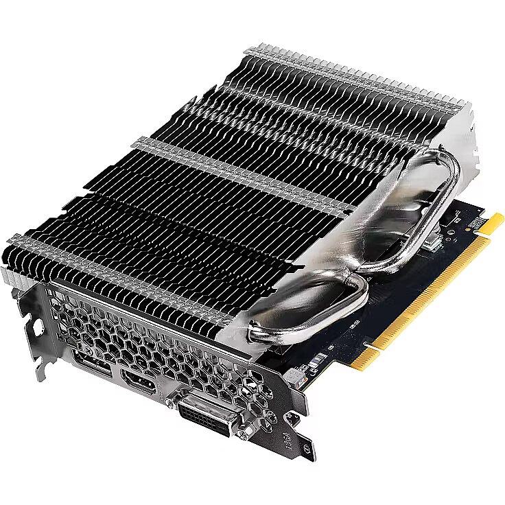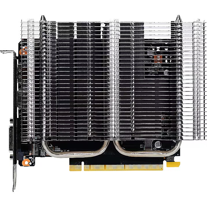 Охлаждение радиатора осуществляется без подвижных деталей (вентилятора), поэтому видеокарта почти не шумит.