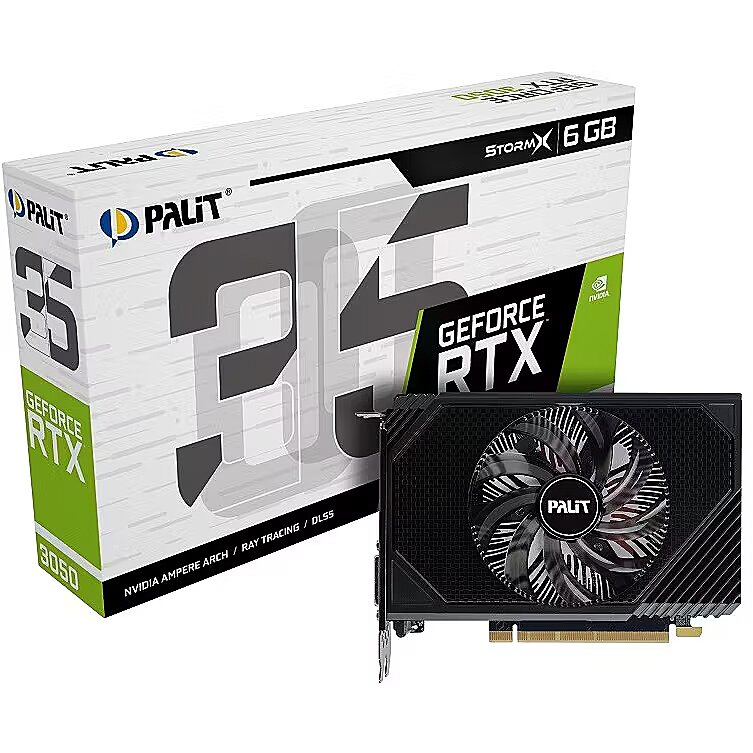 Summary - Palit GeForce RTX 3050 StormX. Graphics processor family: NVIDIA, Graphics processor: GeForce RTX 3050, Processor frequency: 1042 MHz. Discrete graphics card memory: 6 GB, Graphics card memory type: GDDR6, Memory bus: 96 bit. Maximum resolution: 7680 x 4320 pixels. DirectX version: 12 Ultimate, OpenGL version: 4.6, Dual Link DVI. Interface type: PCI Express 4.0. Cooling type: Active, Number of fans: 1 fan(s)