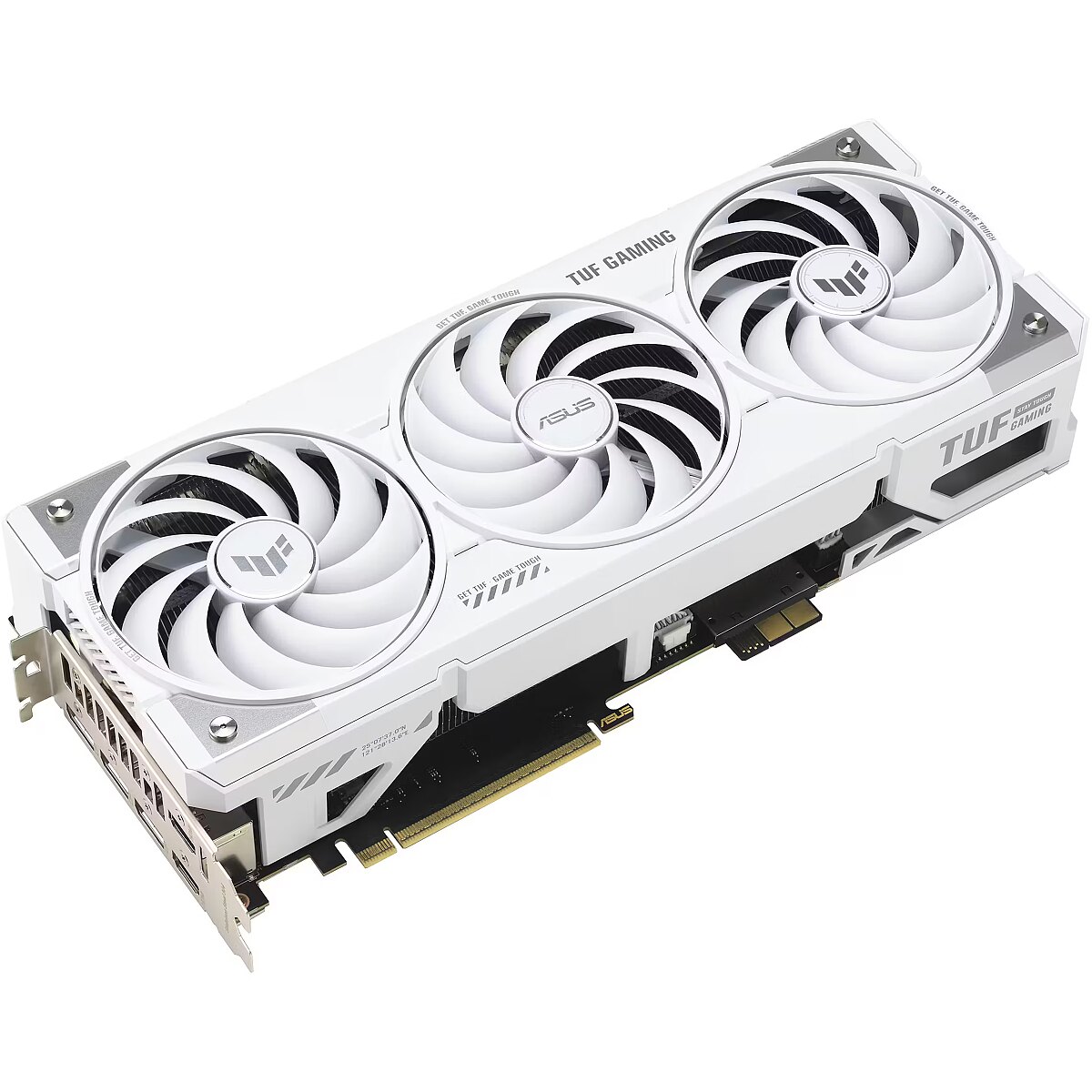 LongSummaryDescription - ASUS TUF-RTX5070TI-O16G-BTF-WHITE. Graphics processor family: NVIDIA, Graphics processor: GeForce RTX 5070 Ti. Discrete graphics card memory: 16 GB, Graphics card memory type: GDDR7, Memory bus: 256 bit. Maximum resolution: 7680 x 4320 pixels. OpenGL version: 4.6. Interface type: PCI Express 5.0. Cooling type: Active, Number of fans: 3 fan(s), Illumination colour: Multi