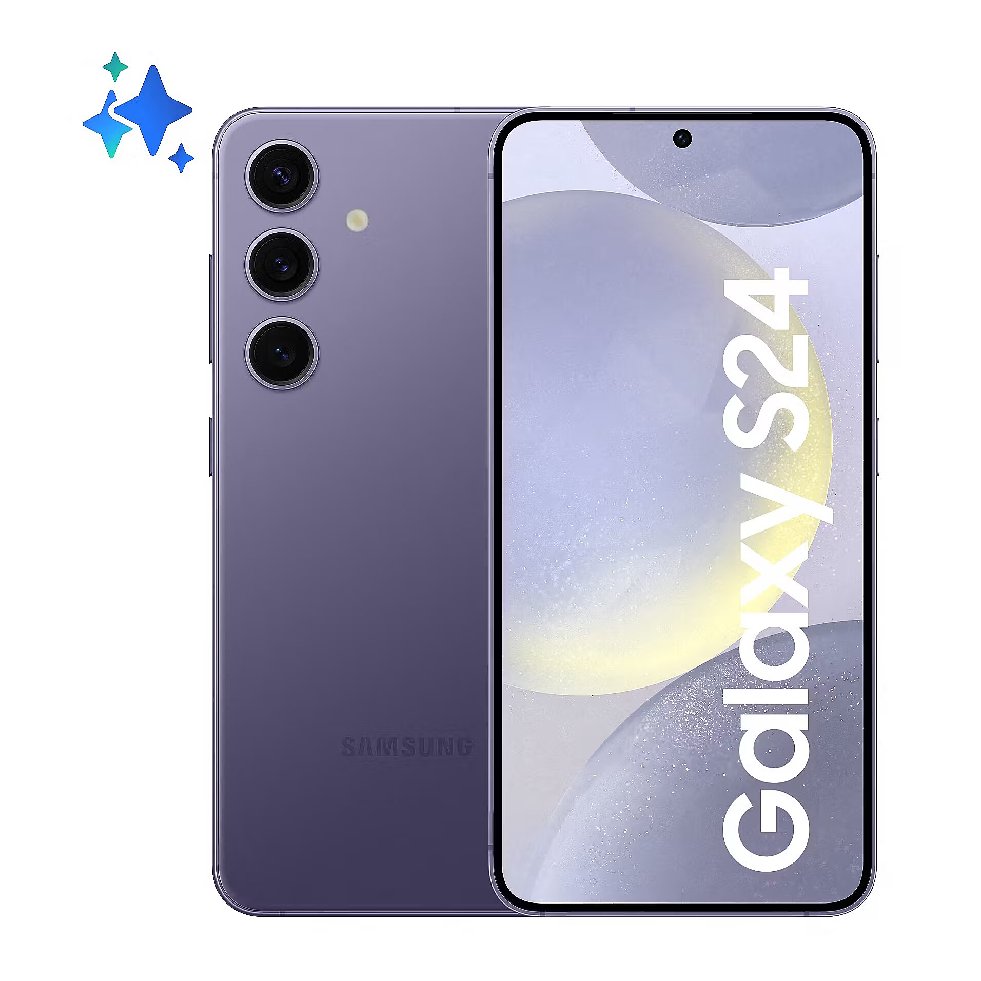 Technical_details - This item is goods intended for the European market. It can differ from original German goods in the following points: possibly different scope of delivery, possible differences in warranty service and duration, possible exclusion of manufacturer promotions (cashback, etc.), possibly no German operating instructions, possibly initial menu language not German, possibly later rollout of software updates, different EAN number. The SAMSUNG Galaxy S24 opens the era of AI - with the Galaxy AI you have great options at your fingertips to get creative or adapt your productivity to your life. The Galaxy S24 has higher computing power, a larger and more beautiful AMOLED display and a battery that lasts all day. The 50 MP main camera with the ProVisual engine and Super HDR produces brilliant and razor-sharp photos or videos in every situation. Thanks to Circle to Search with Google, you can easily circle an object and receive the appropriate Google search results. The extra bright 6.2" FHD+ display of the S24 shines in bright colors and displays content with maximum brilliance. Item no.: 100038790 Smartphone type Color violet EAN 8806095299693 Manufacturer no. SM-S921 Galaxy S24 series Smart home Samsung SmartThings Processor name Samsung Exynos 2400 The designation USB 3.2 Gen 1 corresponds to the previous designations USB 3.1 Gen 1 or USB 3.0. Sim slot Nano SIM slot, dual SIM, eSIM Simlock without SIM lock Total RAM capacity 8 GB (including 8 GB built-in) Display image 15.64 cm (6.2 inches) Fixed memory number 1 Camera back number of lenses 3 Sound speaker 2.0 channel Connectivity WiFi available, Wi-Fi 3 (802.11a), Wi-Fi 3 (802.11b), Wi-Fi 3 (802.11g), Wi-Fi 4 (802.11n), Wi-Fi 5 (802.11ac), Wi -Fi 6 (802.11ax) Smartphone design Location GPS, GLONASS, Beidou, Galileo, QZSS Features Accelerometer, Compass (Magnetometer), Distance Sensor, Ambient Light Sensor, 3-Axis Gyro Sensor, Fingerprint Sensor Android 14 operating system Protective functions against environmental influences. Housing splash-proof Interfaces 1x USB-C 3.2 (5 Gbit/s) Power supply battery capacity 4000 mAh Feature Samsung DeX, Galaxy AI, Circle to Search, ProVisual Engine, AI Image Signal Processor, Super HDR Accessories available USB-C cable, SIM eject tool Dimensions Width: 70.6mm x Height: 147mm x Depth/Length: 7.6mm Weight 167 grams