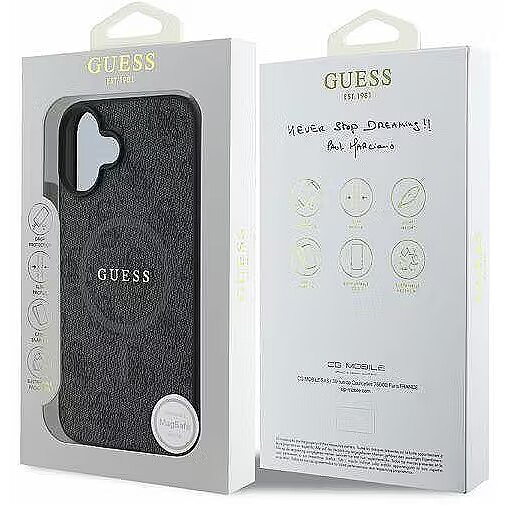 description_en - Upgrade your iPhone 16 with the luxurious Guess PU Leather 4G Colored Ring MagSafe Back Cover. This elegant case features a stylish print and the iconic Guess logo on the back, giving your phone a sophisticated and upscale look. With full accessibility to all buttons and connectors, you can easily use your iPhone 16 without having to remove it from the case. Protect your iPhone 16 from scratches and impacts while enjoying a comfortable and stylish design with this functional case from Guess.