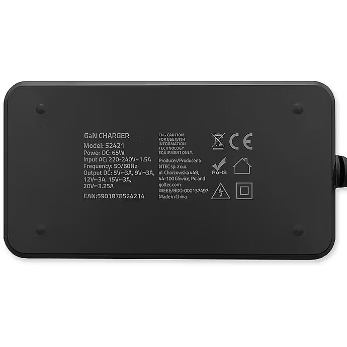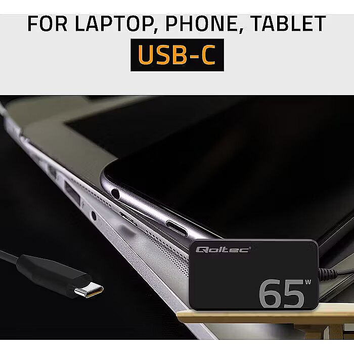 Name - Qoltec 65W GaN Super Fast SLIM | PD | 5-20V | 3.25A | USB-C 3.1 | Laptop | MacBook |Smartfon | + kabel