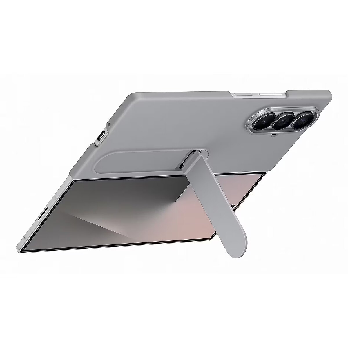 ShortDescription EN - Samsung's Fold7 silicone case offers protection and comfortable softness, ensuring a secure grip and easy handling. The case is equipped with a quick stand that enhances the large screen experience. The Fold7 silicone case is designed as a two-in-one solution, offering convenient grip and quick support, making device handling easier and improving the large screen experience.