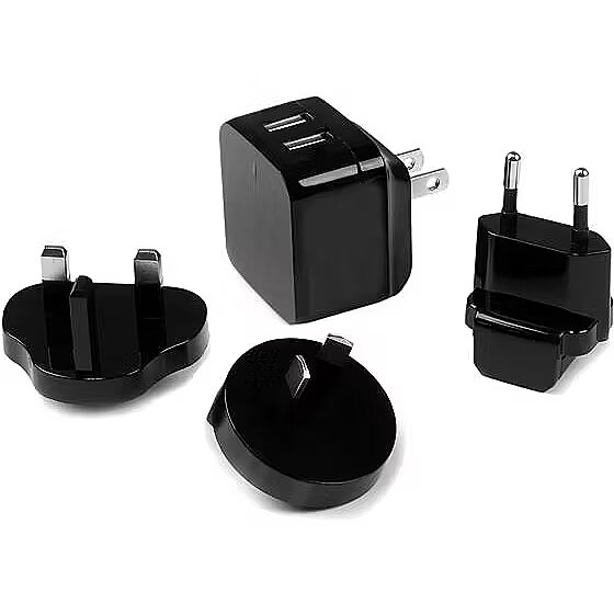LongDesc - Charge your tablet and your phone simultaneouslyPlanning an international business trip or vacation? Now you can keep your mobile devices charged while you're away, without having to worry about whether or not the adapter you use at home will work overseas. The versatile travel charger ships with interchangeable power plugs that let you plug in and charge your devices nearly anywhere you go around the world. Plus, you can charge two of your devices at the same time. This dual-port USB wall charger lets you charge two mobile devices at once, using a single USB wall charger, so you won’t have to wait until one of your devices is fully charged before charging another.International travel – universal power adapterThe wall charger includes a universal power adapter, which lets you plug in to any electrical socket almost anywhere in the world. So, no matter where you are travelling to, you can rest assured that you’ll be able to keep your mobile devices charged and ready to use.Simultaneous charging – dual USB charge portsWith one 1A port for charging your smartphone or iPhone, and a 2.4A port for charging your iPad or other tablet, you’ll always have the necessary charging power for your mobile devices. Whether you’re charging two phones at the same time or charging a phone and a tablet, you can ensure all of your mobile devices are ready when you need them.Compact and lightweight – portable designThe portable USB wall charger features a folding North American plug that tucks away nicely to fit inside your laptop bag, purse, backpack or other carrying case, making it the perfect mobile accessory for any carry-on. Plus, you can easily throw in the correct international plug for your destination and you’re all set to go.Once you land you can swap out the plugs and be ready to charge in the airport, in your hotel room or just about anywhere you can find a wall outlet. The USB2PACBK is backed by our 2-year warranty to ensure dependable performance.Note: Some mobile devices such as certain Samsung and BlackBerry devices use proprietary power connections which are not compatible with aftermarket chargers. Please consult the manufacturer's documentation to ensure compatibility with the USB2PACBK.The StarTech.com Advantage- Plug in and charge your devices almost anywhere in the world- Ensure all your mobile devices are charged and ready when you need them- Compact design fits nicely into any carrying case