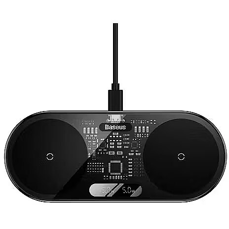 A compact wireless charger will allow you to keep an eye on the condition of the battery and make sure that the electronic device is always ready for work. 2-in-1 gadget equipped with two induction coils, so its functionality automatically increases.