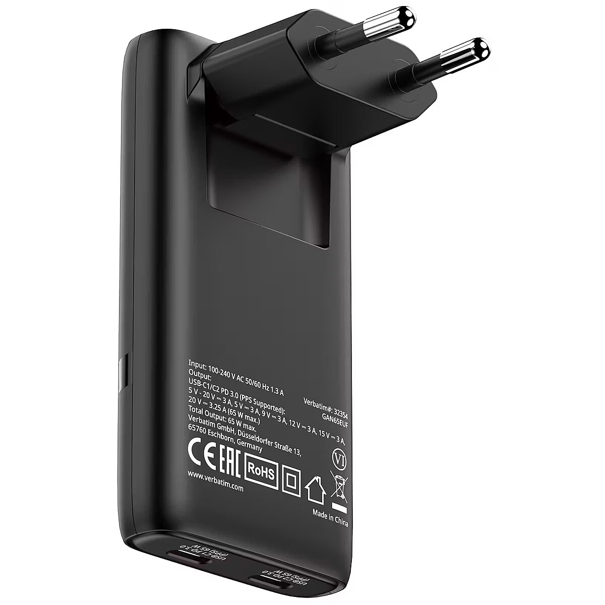 URL - https://www.verbatim-europe.com/en/wall-chargers/products/fold-n-go-gan-eu-wall-charger-65w-2-port-black-32354