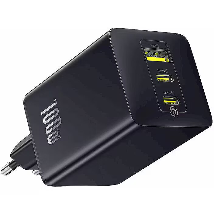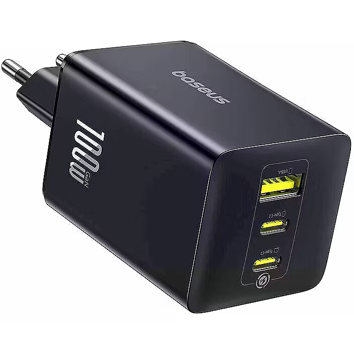 SpecificationsType: wall fast chargerModel: EnerFill FE11Brand: BaseusColor: BlackNumber of ports: 3USB‑A ports: 1USB‑C ports: 2Maximum total power: 100 WSupported protocols: Power Delivery (PD), Quick Charge (QC)Compatibility: smartphones, tablets, laptops and other USB devicesIntelligent power distribution: yesProtection: overcurrent, overvoltage, overheating, short‑circuitHousing material: plasticPower supply: 220‑240 V, 50/60 Hz