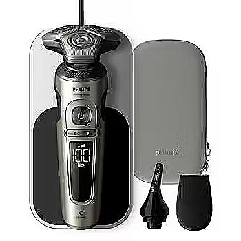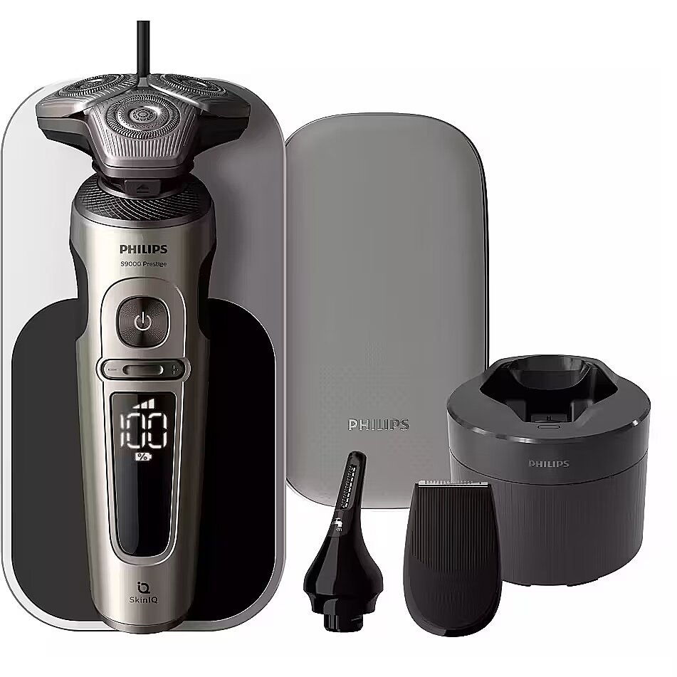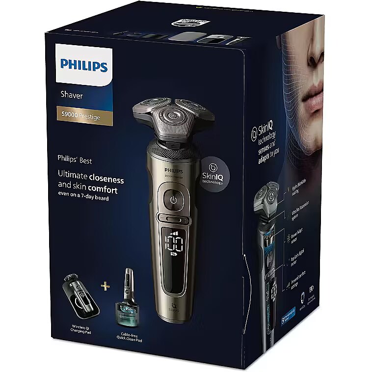 Description - Shaver S9000 Prestige Wet and dry electric shaver with SkinIQ A smooth yet incredibly gentle shave at skin level Enjoy a super close shave and comfort with the Philips Shaver Series 9000 Prestige. It shaves up to 0.00 mm close to the skin with the Lift & Cut shaving system, and SkinIQ technology adapts to all facial contours, even with a beard that is 7 days old. Skin level proximity NanoTech Dual Precision Blades Hydro SkinGlide coating Ultraflex Suspension System