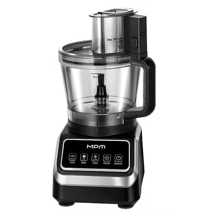 Other features - Elektroniczny panel sterujący Regulacja prędkości odpowiednia do funkcji: 4 tryby pracy: low, med, high oraz pulse Wszystkie zdejmowane części robota przystosowane do mycia w zmywarce BPA free Gumowe nóżki antypoślizgowe Funkcje: wyrabianie, mieszanie, miksowanie, mielenie, siekanie, blendowanie, szatkowanie, krojenie, ścieranie, ubijanie, rozdrabnianie
