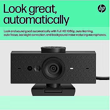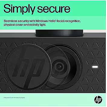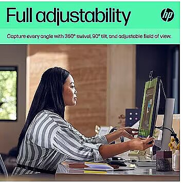 ProdDesc - HP 625 USB FHD Conferencing Business Webcam - Tilt, Swivel, Dual-Noise Reducting Microphone, HDR, Windows Hello Compatible, Attachable - Black