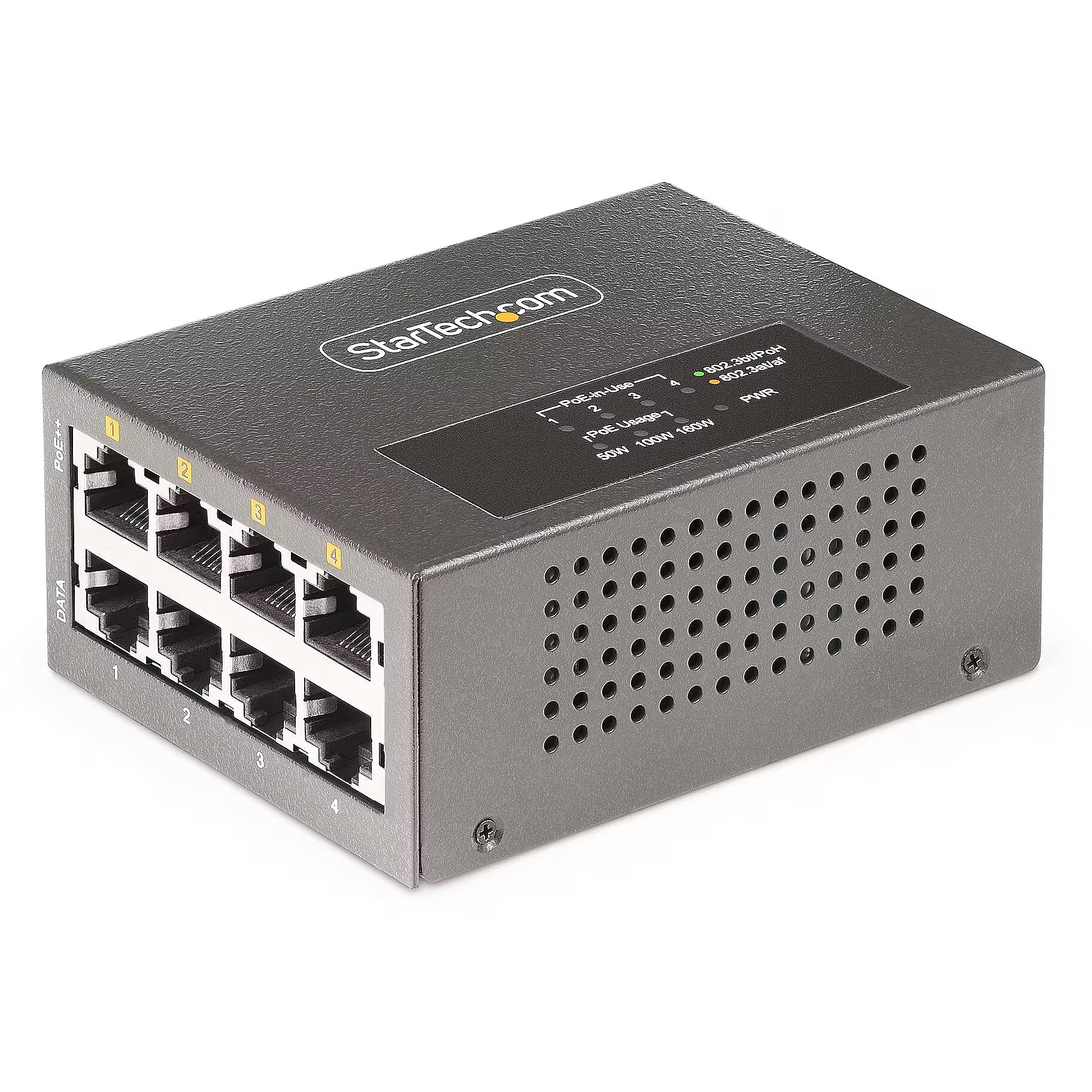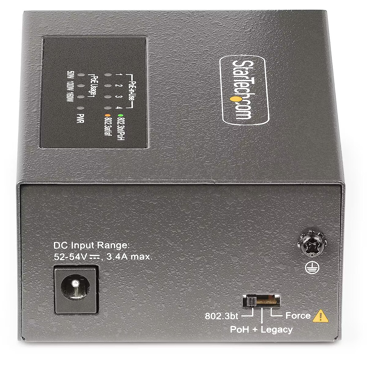 Title - StarTech.com 4-Port Multi-Gigabit PoE++ Injector, 5/2.5/1G Ethernet (NBASE-T), PoE/PoE+/PoE++ (802.3af/802.3at/802.3bt), 160Watts Power Budget, Wall/DIN Rail Mountable, Unmanaged