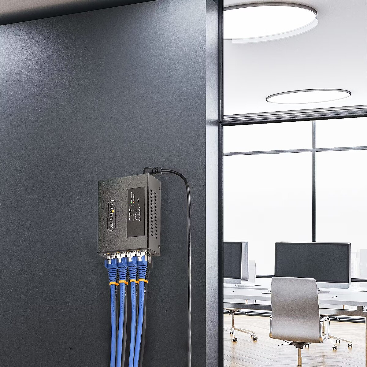 LongProductName - StarTech.com 4-Port Multi-Gigabit PoE++ Injector, 5/2.5/1G Ethernet (NBASE-T), PoE/PoE+/PoE++, Wall/DIN Rail Mountable