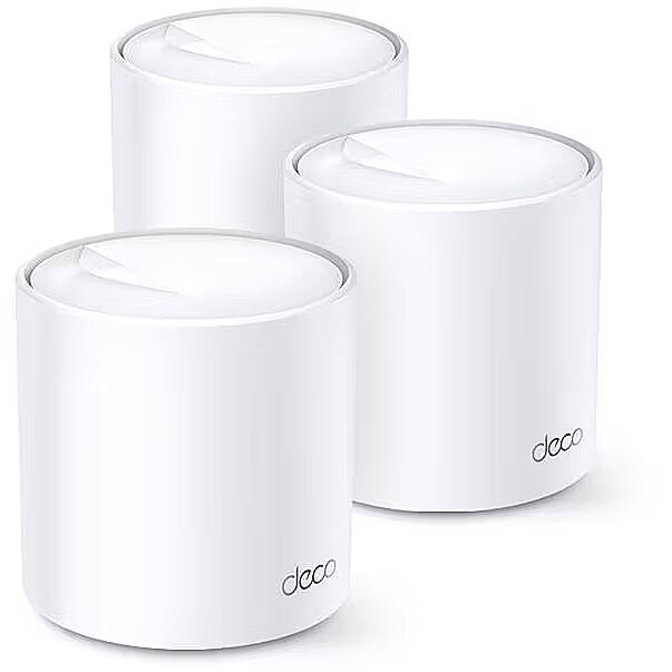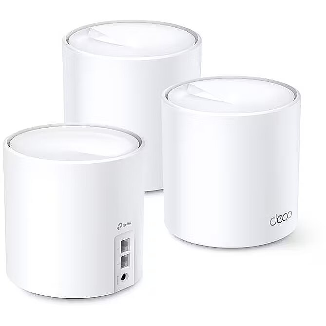 LongSummaryDescription - TP-Link AX3000 Whole Home Mesh Wi-Fi System, 3-Pack. Product colour: White, Antenna type: Internal, LED indicators: Power, Status. Wi-Fi band: Dual-band (2.4 GHz / 5 GHz), Top Wi-Fi standard: Wi-Fi 6 (802.11ax), Wi-Fi standards: 802.11a, 802.11b, 802.11g, Wi-Fi 4 (802.11n), Wi-Fi 5 (802.11ac), Wi-Fi 6 (802.11ax). Firewall security: SPI, Mobile operating systems supported: Android 4.4, Android 5.0, Android 5.1, Android 6.0, Android 7.0, Android 7.1, Android 7.1.2,.... AC input voltage: 100 - 240 V, AC adapter input current: 0.6 A, AC input frequency: 50/60 Hz. Compliance certificates: CE, RoHS, Certification: FCC, IC, NCC, BSMI, IDA, RCM, JPA, JRF, VCCI, KC