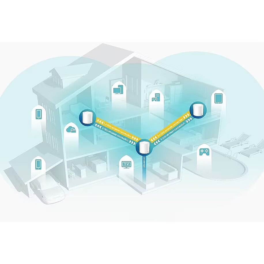 Description - Home Wi-Fi 6 Mesh AX3000 system Faster connections: Wi-Fi 6 speeds up to 3000 Mbps, 2402 Mbps on the 5 GHz band and 574 Mbps on the 2.4 GHz band. More connected devices: The use of OFDMA and MU-MIMO technologies translates into four times higher performance and the ability to transmit to even more devices at the same time. Boosted Wi-Fi Signal: Cover your entire home and have a strong Wi-Fi signal in every room with Wi-Fi 6 technology. Latency reduced to a minimum: Significant reduction in transmission shifts gives you a significant advantage over your opponents during online games and ensures the stability of video calls. Seamless Networking: Based on the integrated operation of your home Wi-Fi units, your connected devices automatically switch as you move around your home to take advantage of the fastest speeds available. Comprehensive protection: WPA3 encryption and TP-Link HomeShield provide access to fully customizable features, including parental controls, antivirus and QoS, to make your Internet experience completely safe. TP-Link HomeShield: Keeps your home network safe with the latest features designed to protect your network and IoT devices. Setup is easier than ever before: The Deco app guides you step-by-step through the entire setup process. A complete game changer: Wi-Fi 6 Mesh technology Deco X60 is a Wi-Fi 6 home Wi-Fi system designed to provide more comprehensive home coverage, faster speeds and higher performance. Experience the power of the latest Wi-Fi Mesh technology by connecting more devices and transferring data faster than ever before. Let the network of the future come to your home now. AI-powered mesh network Always learning and constantly optimizing Deco X60 equipped with a Mesh network based on Artificial Intelligence (AI), provides intelligent Wi-Fi that follows you wherever you are. It automatically learns the network environment, the quality of client devices and user habits. Sophisticated algorithms take many factors into account, so Deco X60 can provide the perfect Wi-Fi Mesh network tailored to your home. You'll be able to move around your home and enjoy seamless streaming at the highest possible speed. Seamlessly switch under one Wi-Fi network name TP-Link Mesh technology makes Deco routers work together to create a unified Wi-Fi network. When moving around the house, your phone or tablet will always connect to the Deco router that offers it the best connection, without interrupting the transfer. 6 streams: lower latency, better experience Six simultaneous data streams offer connected devices so much bandwidth that it is almost impossible to use all of it. In practice, this means that you can play your favorite games without experiencing any transfer delays or watch a movie in great 8K quality, enjoying the pristine image and sound even when other household members generate intense data traffic on their devices at the same time. Entrust your home protection to specialists Take advantage of the extensive capabilities of TP-Link HomeShield to create a tailored and secure wireless network. Regardless of whether you care about protecting sensitive data or want to limit children and guests' access to the network, HomeShield will provide you with the tools necessary for comprehensive network management. Self-configuration? It's simpler than you think Remove Deco devices from the box, install the application and follow the instructions displayed. The Deco application will take care of the rest - you will have access to the network in just a few minutes. You'll be surprised how simple it is! Easy to manage With the Deco application you can manage your network from home or remotely. The application allows, among other things, verification of connected devices, assigning them priorities and configuring the network for guests. Voice control Pair the Deco unit with your Alexa speaker and control the device with simple voice commands. Enjoy life in smart style. A tasteful addition "Less is more" Deco X60 perfectly reflects the main idea of minimalism. The white casing, harmonious lines and regular design make the device a very subtle addition, reminiscent of a winter morning or a sunny summer day. It fits any style and does not disturb the decor of the room, blending in perfectly with the surroundings.