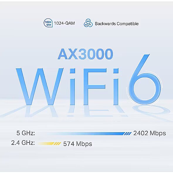 Desc - Portu ātrums: 10/100/1000 Mb/s, Tips: LAN/Wifi, WiFi protokoli: IEEE 802.11a/b/g/n/ac/ax, WiFi ātrums: 3000 Mb/s, WiFi frekvenču josla: 2.4 GHz / 5 GHz (Divu joslu), LAN portu skaits: 2, Ugunsmūris | Firewall: Nav zināms, Garantija: 2 gadi