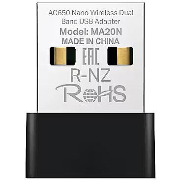 Description - MERCUSYS MA20N AC650 Nano Wireless Dual Band USB Adapter Dual Band Wi-Fi Speed — Speeds up to 433 Mbps (5 GHz) + 200 Mbps (2.4 GHz) Plug and Play — With the built-in inbox driver by Windows operation systems, you just need to plug into your computer and play. Nano Size— A compact, convenient solution to make your device wireless. Much smaller than a regular USB flash drive. Improved Security — The latest security enhancement, WPA3, provides enhanced protection in personal password safety Windows Compatible — Supported operating system: Windows 10, 11 (32/64bit)