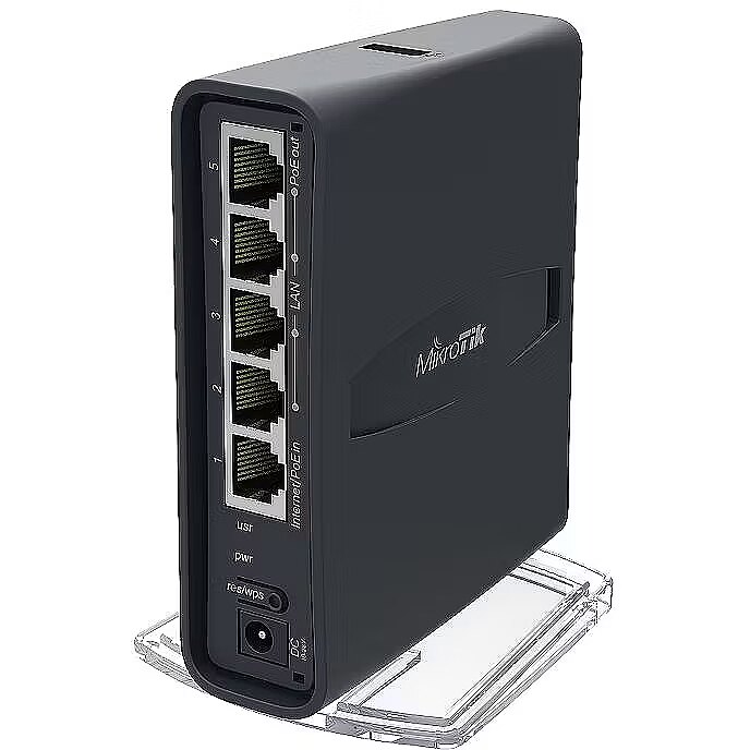 Description - MikroTik RB952Ui-5ac2nD-TC hAP ac lite Dual-Concurrent 2.4/5GHz AP, 802.11ac, Five Ethernet ports, PoE-out on port 5, USB for 3G/4G support, universal tower case The hAP ac lite is a Dual-concurrent Access Point, that provides WiFi coverage for 2.4GHz and 5GHz frequencies at the same time. Unit is equipped with a 650MHz CPU, 64MB RAM, five 10/100Mbps Ethernet ports (PoE output on port #5), dual-chain 802.11b/g/n 2.4GHz wireless, single chain 802.11a/n/ac 5GHz wireless, USB port for 3G/4G modem and a RouterOS L4 license. New design universal case allows unit to be positioned either horizontally (desktop) or vertically (tower case). Wall anchored mounting kit is provided.