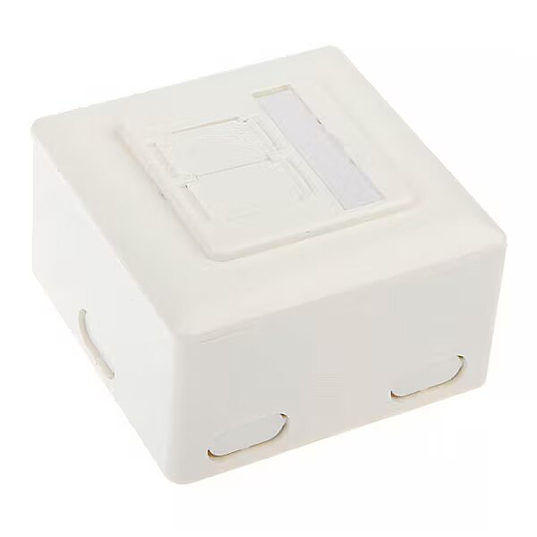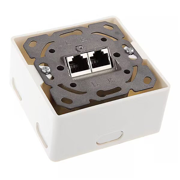 LongDesc - Cat. 6 connection box with 2x RJ45 sockets is surface- or flush-mounted, possessing two LSA connection strips with 8 clamping plates each. Connection box is completely shielded.