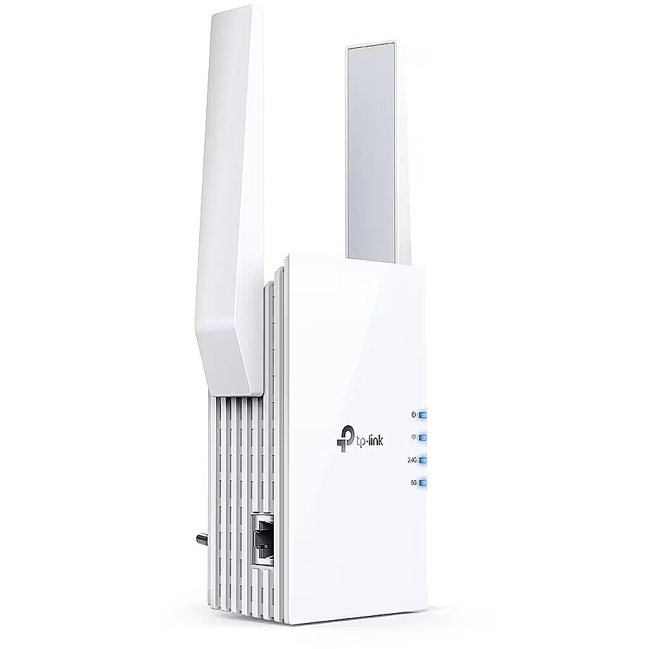 LongSummaryDescription - TP-Link RE505X. Type: Network transmitter & receiver, Data transfer rate: 1200 Mbit/s, Ethernet LAN data rates: 10,100,1000 Mbit/s. Antenna type: External, Transmitting power (CE): 2.4 GHz ≤20dBm, 5 GHz ≤30dBm. Cabling technology: 10/100/1000Base-T(X), Networking standards: IEEE 802.11a, IEEE 802.11ac, IEEE 802.11ax, IEEE 802.11b, IEEE 802.11g, IEEE 802.11n, Wi-Fi standards: 802.11a, 802.11b, 802.11g, Wi-Fi 4 (802.11n), Wi-Fi 5 (802.11ac), Wi-Fi 6 (802.11ax). Product colour: White, LED indicators: Power, WAN, WLAN, Quantity per pack: 1 pc(s). AC input voltage: 100 - 240 V, AC input frequency: 50/60 Hz, Power consumption (max): 10 W