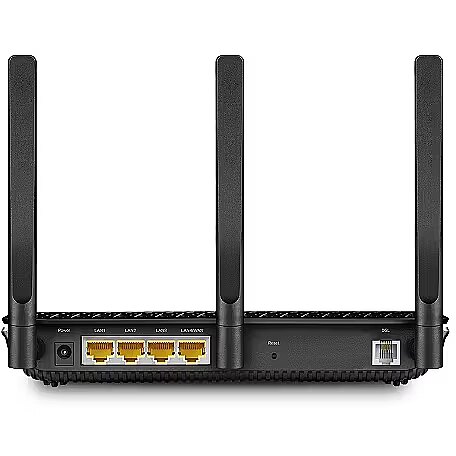 LongSummaryDescription - TP-Link AC2100 Wireless MU-MIMO VDSL/ADSL Modem Router. WAN connection type: RJ-45. Wi-Fi band: Dual-band (2.4 GHz / 5 GHz), Top Wi-Fi standard: Wi-Fi 5 (802.11ac), WLAN data transfer rate (max): 1733 Mbit/s. Ethernet LAN interface type: Gigabit Ethernet, Ethernet LAN data rates: 10,100,1000 Mbit/s, Cabling technology: 10/100/1000Base-T(X). Security algorithms: 64-bit WEP, 128-bit WEP, WPA, WPA-PSK, WPA2, WPA2-PSK. Supported network protocols: IPv4, IPv6
