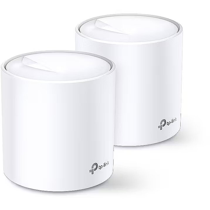LongSummaryDescription - TP-Link AX3000 Whole Home Mesh Wi-Fi 6 System, 2-Pack. Product colour: White, Antenna type: Internal, LED indicators: Power, Status. Wi-Fi band: Dual-band (2.4 GHz / 5 GHz), Top Wi-Fi standard: Wi-Fi 6 (802.11ax), Wi-Fi standards: 802.11a, 802.11b, 802.11g, Wi-Fi 4 (802.11n), Wi-Fi 5 (802.11ac), Wi-Fi 6 (802.11ax). Firewall security: SPI, Mobile operating systems supported: Android 4.4, Android 5.0, Android 6.0, Android 7.0, Android 8.0, Android 9.0, iOS, iOS 10.0, iOS.... AC input voltage: 100 - 240 V, AC adapter input current: 0.8 A, AC input frequency: 50/60 Hz. Compliance certificates: RoHS, CE, Certification: FCC, IC, NCC, BSMI, IDA, RCM, JPA, JRF, VCCI, KC