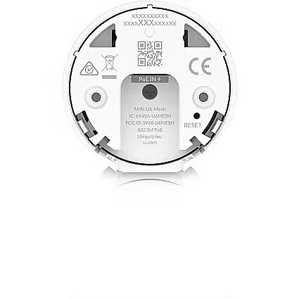Description - UBIQUITI U6-MESH Sleek, indoor/outdoor WiFi 6 access point designed for mesh applications. + WiFi 6 support (2.4/5 GHz bands) + 5.3 Gbps aggregate throughput rate + Horizontal antenna pattern to widen coverage area + (1) GbE RJ45 port (PoE In) + IPX5-rated, waterproof casing