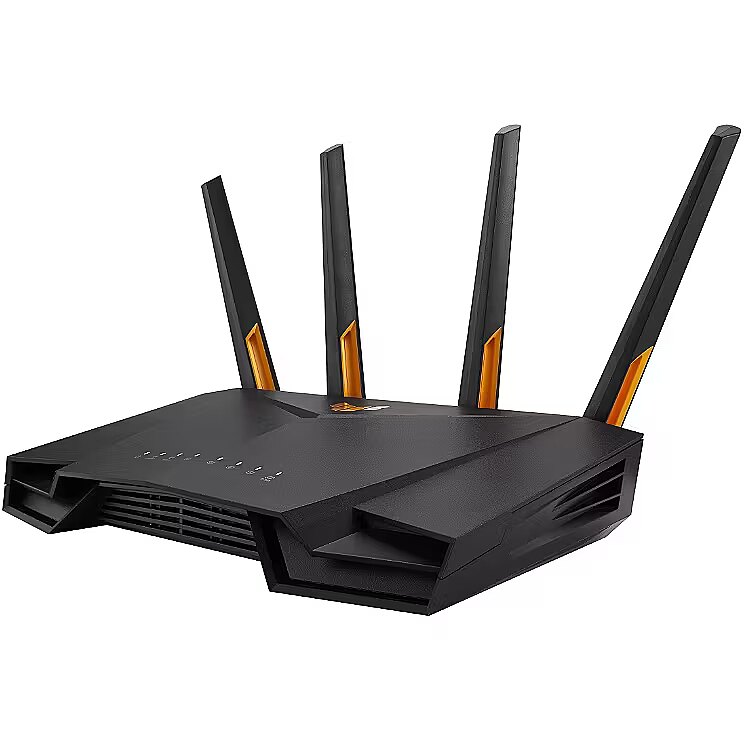 Description - TUF Gaming AX4200 dual-band WiFi 6 gaming router with mobile gaming mode, 3-stage port forwarding, 2.5Gbps port, AiMesh for mesh Wi-Fi, AiProtection Pro network security Ultrafast Wi-Fi 6 - Enjoy speeds of up to 4,200 Mbps and 4 times faster network performance with OFDMA and 160 MHz channels. True Multi-Gigabit wired speeds - aggregate 2-Gigabit LAN connections, 2.5 Gbps wired port and Wi-Fi 6. Easy 3-step port forwarding - Open NAT makes port forwarding simple, eliminating frustrating and complicated manual configuration. ASUS AiMesh support - Create a flexible, seamless mesh network throughout your home with AiMesh-compatible routers. Proven durability and stable performance - The TUF Gaming AX4200 is built with durability in mind and undergoes verified testing to ensure reliable and stable performance. TUF Gaming AX4200 The TUF Gaming AX4200 is designed to provide stable and fast wireless and wired connections in high device density environments. It is a router that benefits all your devices, from laptops, smartphones and gaming consoles to all the IoT devices in your home. 4X capacity. 2X faster Wi-Fi 6 delivers faster wireless speeds with OFDMA, BSS colouring and MU-MIMO technologies, and boosts network performance so all your devices get their fair share of Wi-Fi bandwidth. It is ideal for busy networks with a wide variety of Wi-Fi devices such as laptops, smartphones and smart home devices. Simultaneous gaming and VPN VPN Fusion allows you to run both a VPN and a regular internet connection - simultaneously! So even if other network users need to use the VPN, you can still enjoy maximum gaming speed. Commercial-grade security for your home Home network security is crucial when you have multiple devices connected. The TUF Gaming AX4200 includes free AiProtection Pro for life, including the latest WPA3 security protocol and advanced parental controls. Every device is protected by the TUF Gaming AX4200, and with the convenient mobile app, you can keep an eye on everything happening on your network.