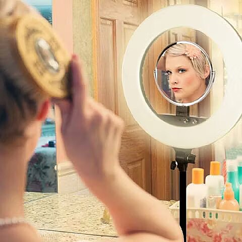 description_short_en - Handy LED light Perfect for portraits and vlogs Color temperature: 3200–5800 K Diameter: 30 cm Magnifying mirror & phone holder included